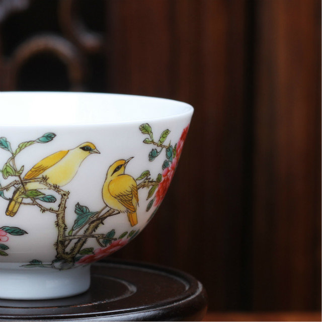 【清雍正 珐琅彩鸲鹆秋光图杯】