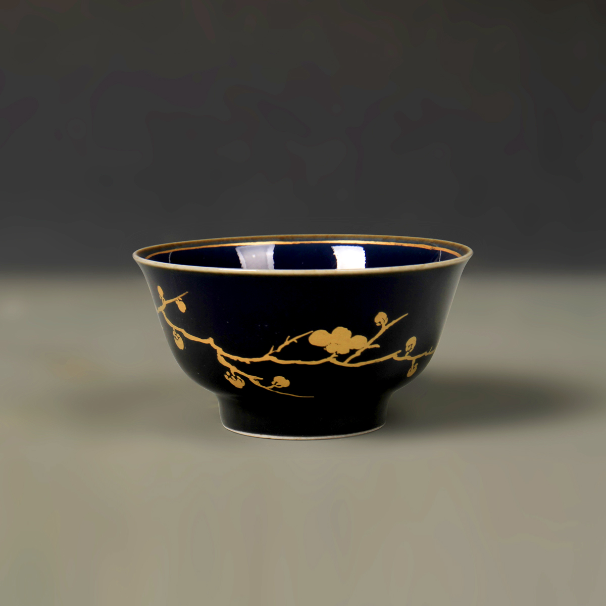 【元蓝釉金彩月影梅纹杯】