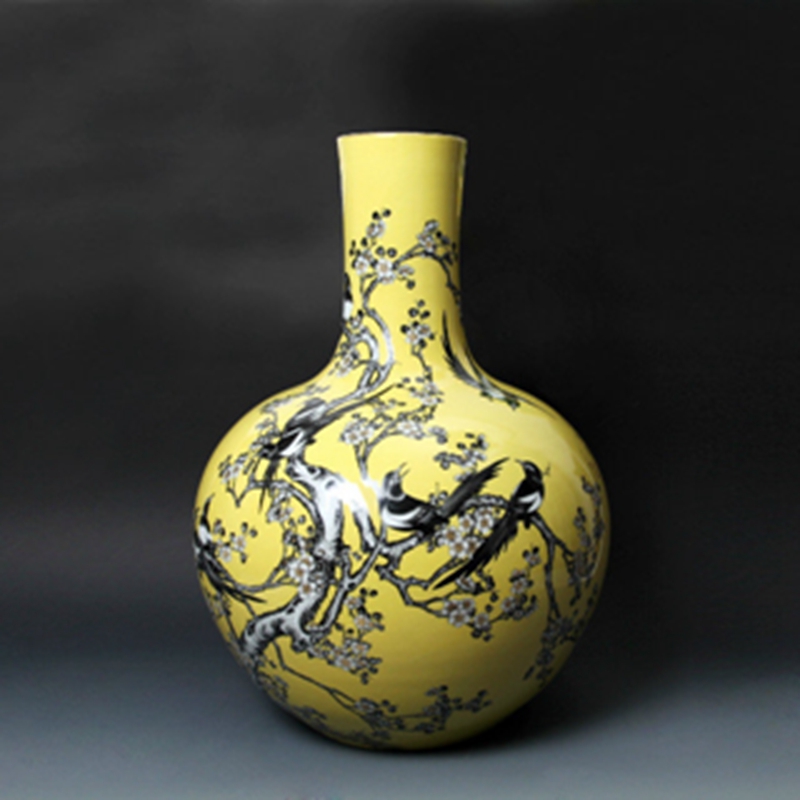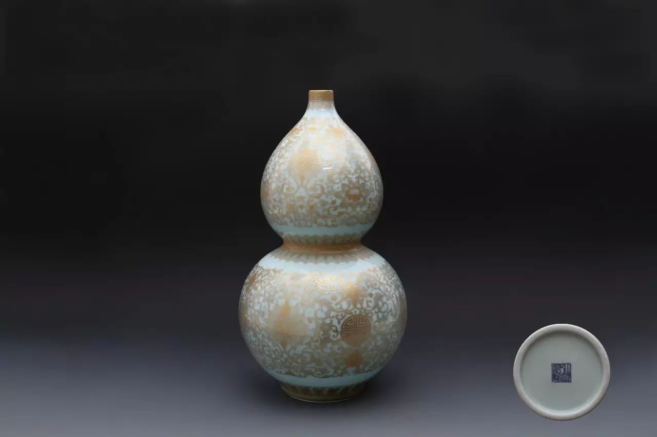 【清乾隆 墨彩缀金报喜荣昌瓶】