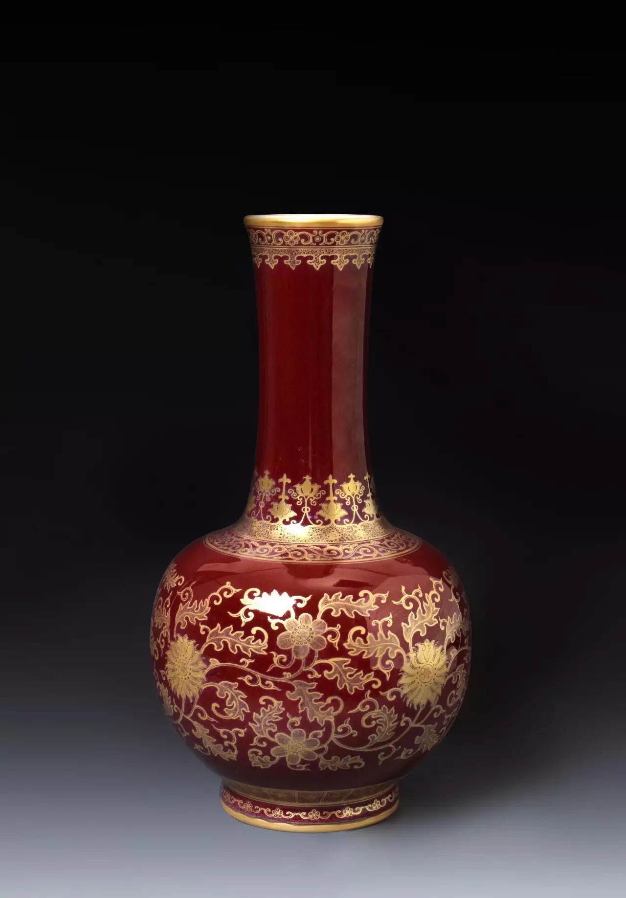 【清雍正 九州如意红釉瓶】