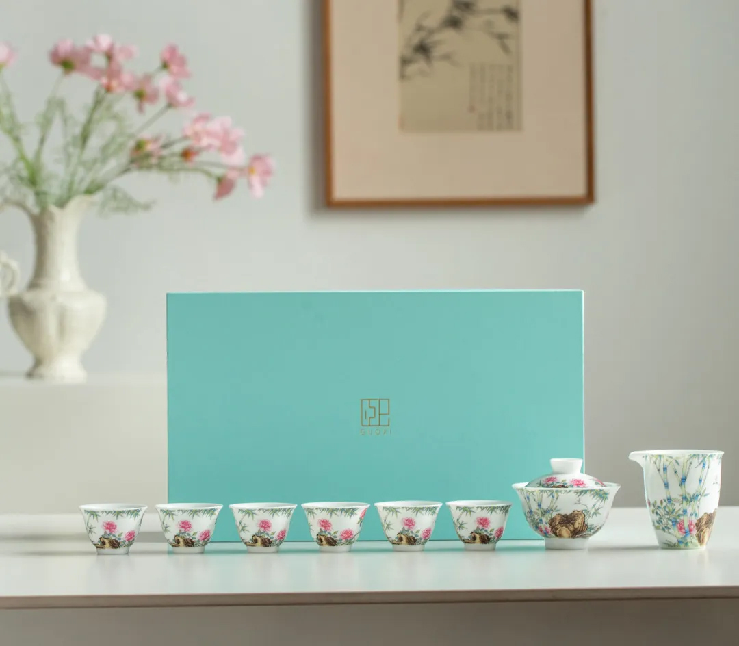 清·乾隆 松石绿地粉彩描金四季花卉盖罐