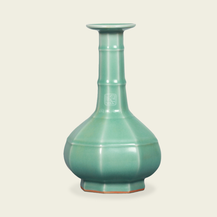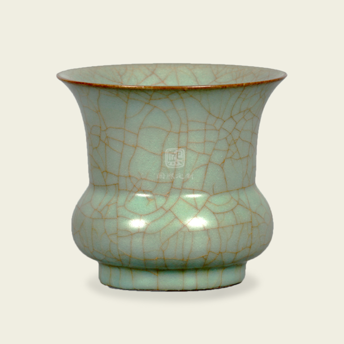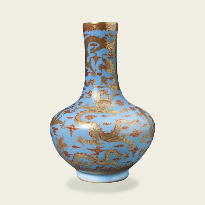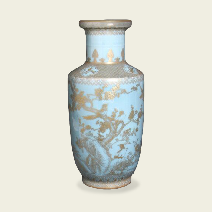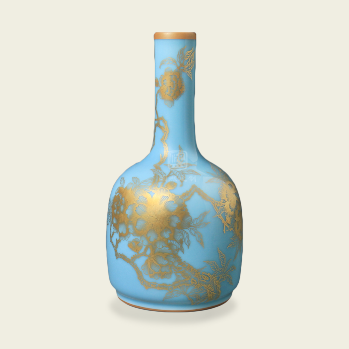 清·乾隆 天青釉金彩花卉纹摇铃尊