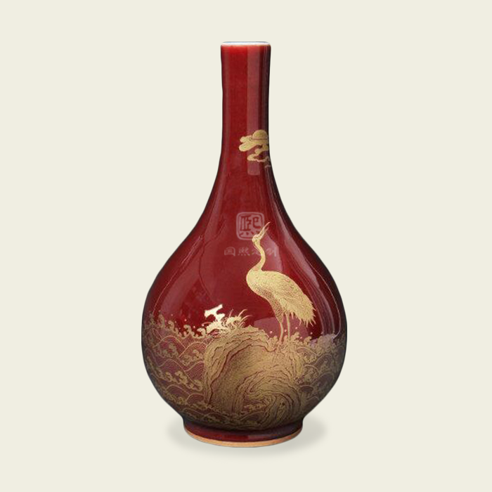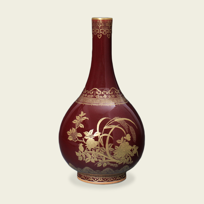 清·乾隆 一品当朝金彩红釉瓶