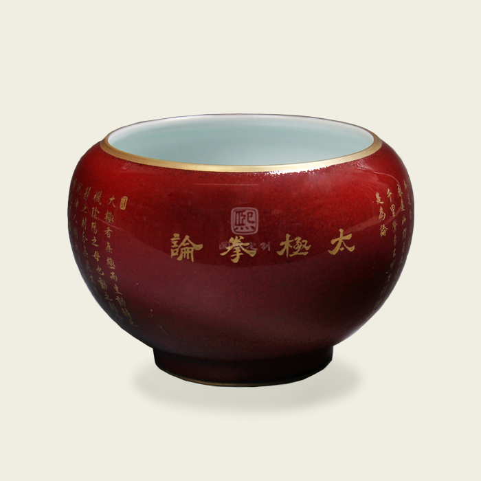 清·康熙 红釉太极拳论洗