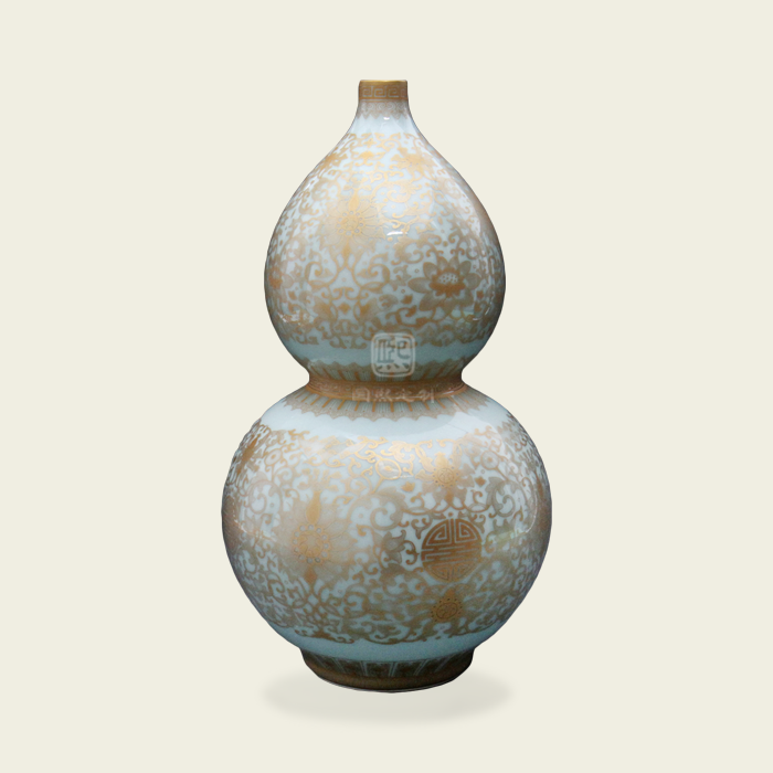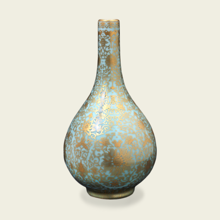 清·乾隆 粉青釉金彩福禄瓶