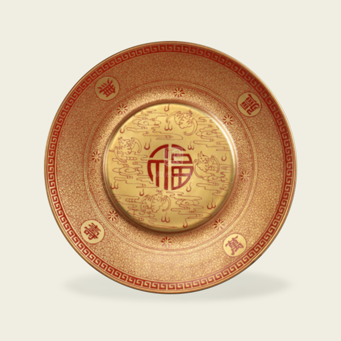 清·乾隆 矾红描金万寿无疆盘