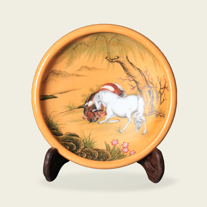 国熙珍赏 黄釉双马洗