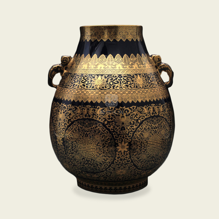 清·乾隆 霁蓝金彩福筒瓶