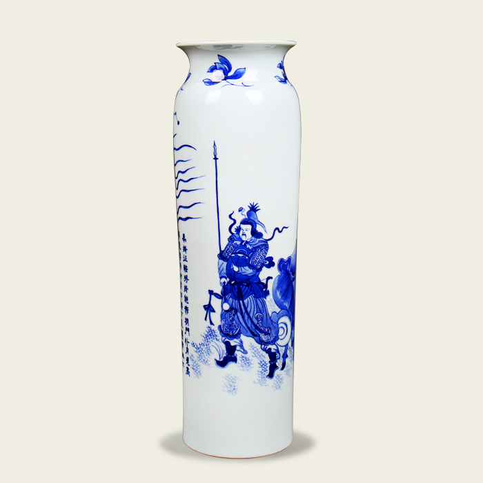 清顺治 青花武士图筒瓶