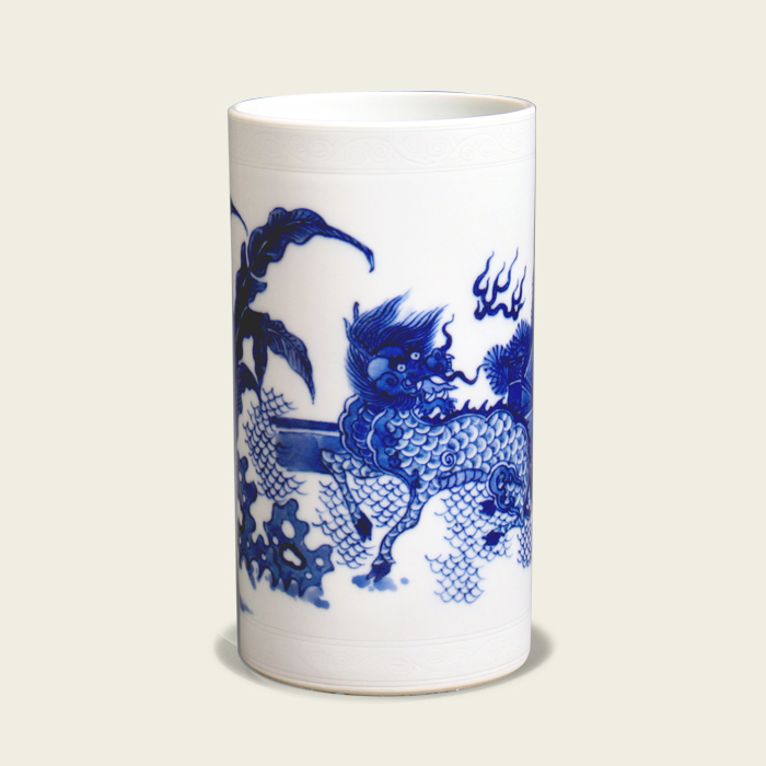 清顺治 青花麒麟纹笔筒
