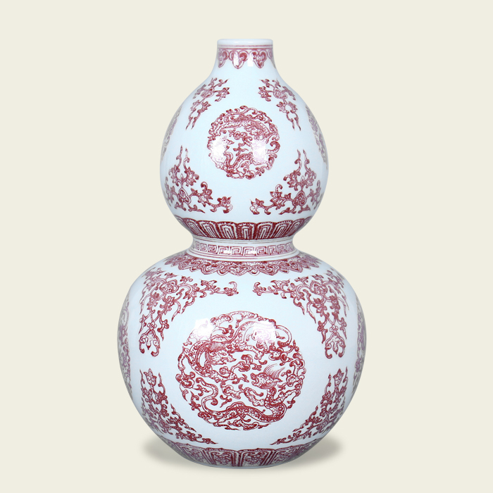 清乾隆 釉里红团龙纹葫芦瓶